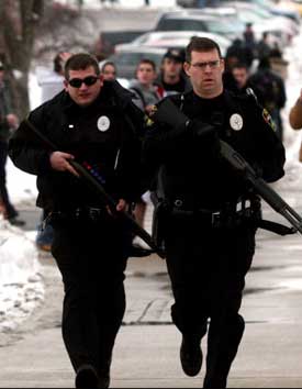 На снимке Си-Эн-Эн видно, как эффектно бегут вооруженные полицейские к очередному месту трагедии, где вооруженный преступник расстрелял 4 магазина патронов в людей. Угадайте, где произошла очередная бойня? Конечно, в gun-free zone (зоне свободной от оружия), в университете. Ну, и как, смогла полиция защитить студентов? Конечно, нет. Вы угадали. Но поздравлять вас с догадливостью не буду, потому что случай трагический, да к тому же это становится скверной традицией – стрельба именно в тех местах, где преступники знают, что им не окажут сопротивления – в зонах, свободных от оружия.