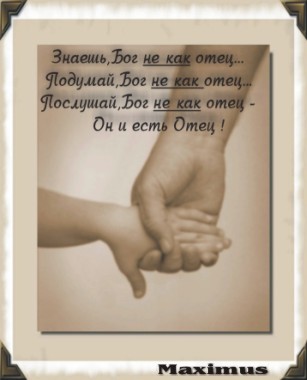 Она вернулась домой и проскользнула в свою комнатку, свой мирок, избегая маминых вопросов, ... упала на кровать и залилась слезами, в душе все бурлило и кипело, она рыдала в подушку и вдруг из самой глубины души вырвался сдавленный крик "Папа!!!" ... тишина..... и мир.. наобычайный мир на сердце.."Господи, Папочка, прости меня, Ты всегда был рядом, прости, что я никогда не называла тебя Папа..." и прилив Отцовской нежности и любви к своей дочери... Папа....