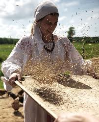 Перед посевом, отделяя плевелы.