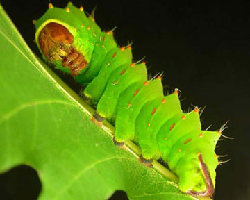 Бравый снова зарылся носом в траву и, наконец-то, разглядел небольшую толстую зеленую гусеницу. Она сидела на листке и обгрызала его маленькими острыми зубками.